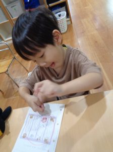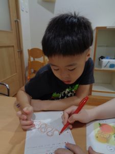 「すごい!」「上手!」と褒めると子どもたちも喜んでくれますが、運筆や言葉の上達を促すために「~が上手になったね」と具体的に褒めるようにしています。そうすることで「次もこうすればいいんだ」と子どもたちの気づきにつながっていきます。