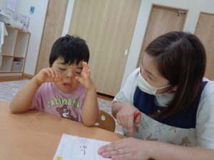 「すごい!」「上手!」と褒めると子どもたちも喜んでくれますが、運筆や言葉の上達を促すために「~が上手になったね」と具体的に褒めるようにしています。そうすることで「次もこうすればいいんだ」と子どもたちの気づきにつながっていきます。