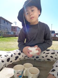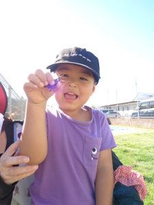 ↓シャボン玉の日もあります。口を使う動作を促しています。