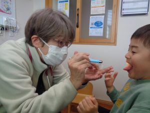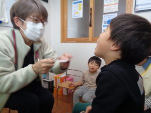 ↓シャボン玉の日もあります。口を使う動作を促しています。