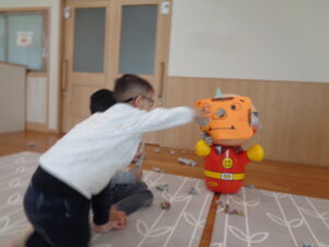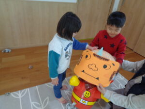 2月3日は豆まきだ りす組&きりん組👹 2026年2月4日 未来塾スタッフ 節分にちなんだ保育活動が通園療育の各クラスで行われました。 りす組はみんなで鬼のお面の製作をしました👹 みんな真剣 ↑嬉しそう😊 きりん組はパワフルに豆まき活動 エイッ やー 体づくりの一環でボールも投げました。 鬼さんの心配もしてみんな優しいですね☆